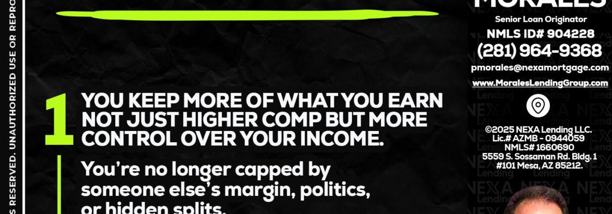 Hi, my name is Patrick Morales. I’m a Loan Officer with NEXA Lending LLC, offering personalized mortgage solutions, fast customized quotes, great rates and service with integrity.