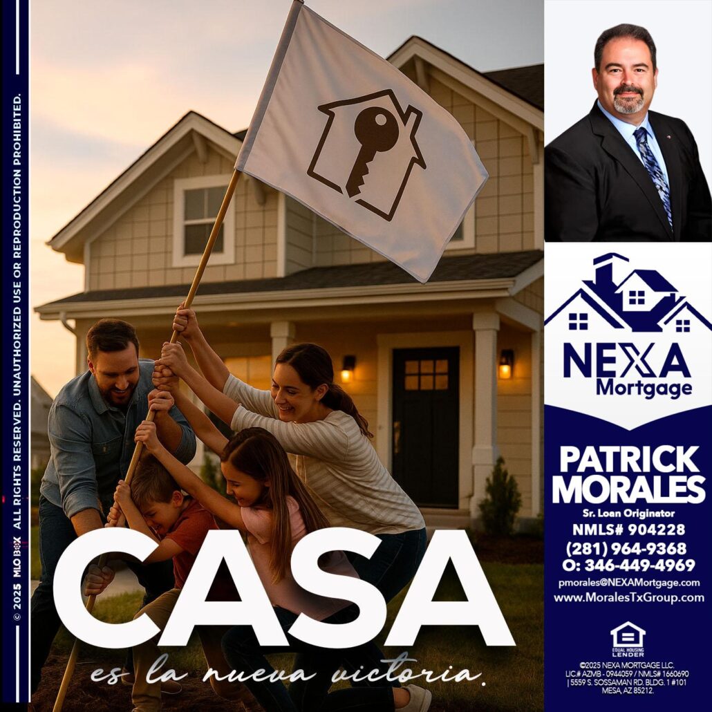 Hi, my name is Patrick Morales. I’m a Loan Officer with NEXA Mortgage LLC., offering personalized mortgage solutions, fast customized quotes, great rates and service with integrity.