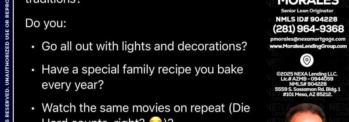 Hi, my name is Patrick Morales. I’m a Loan Officer with NEXA Lending LLC, offering personalized mortgage solutions, fast customized quotes, great rates and service with integrity.