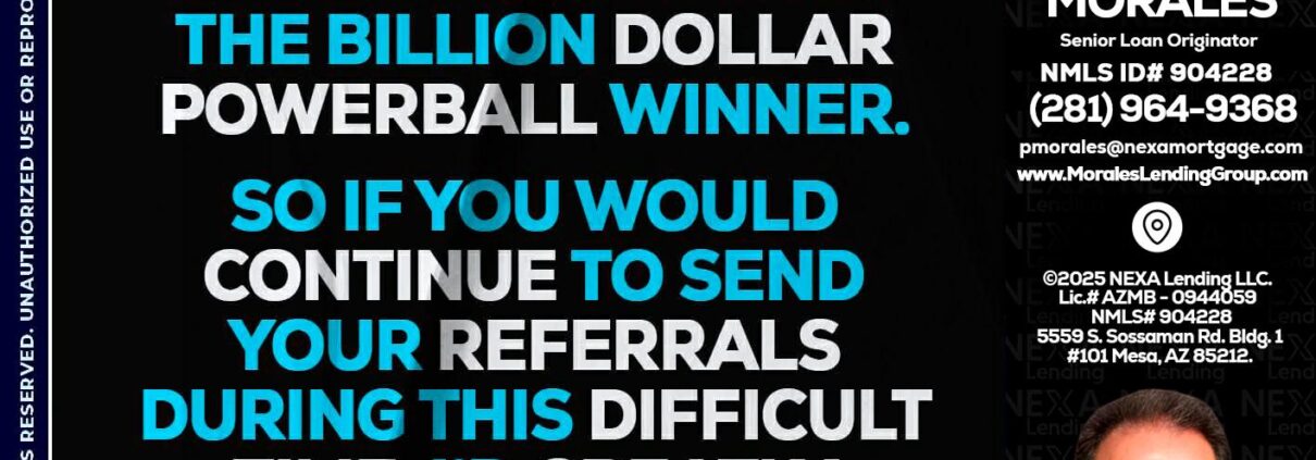 Hi, my name is Patrick Morales. I’m a Loan Officer with NEXA Lending LLC, offering personalized mortgage solutions, fast customized quotes, great rates and service with integrity.