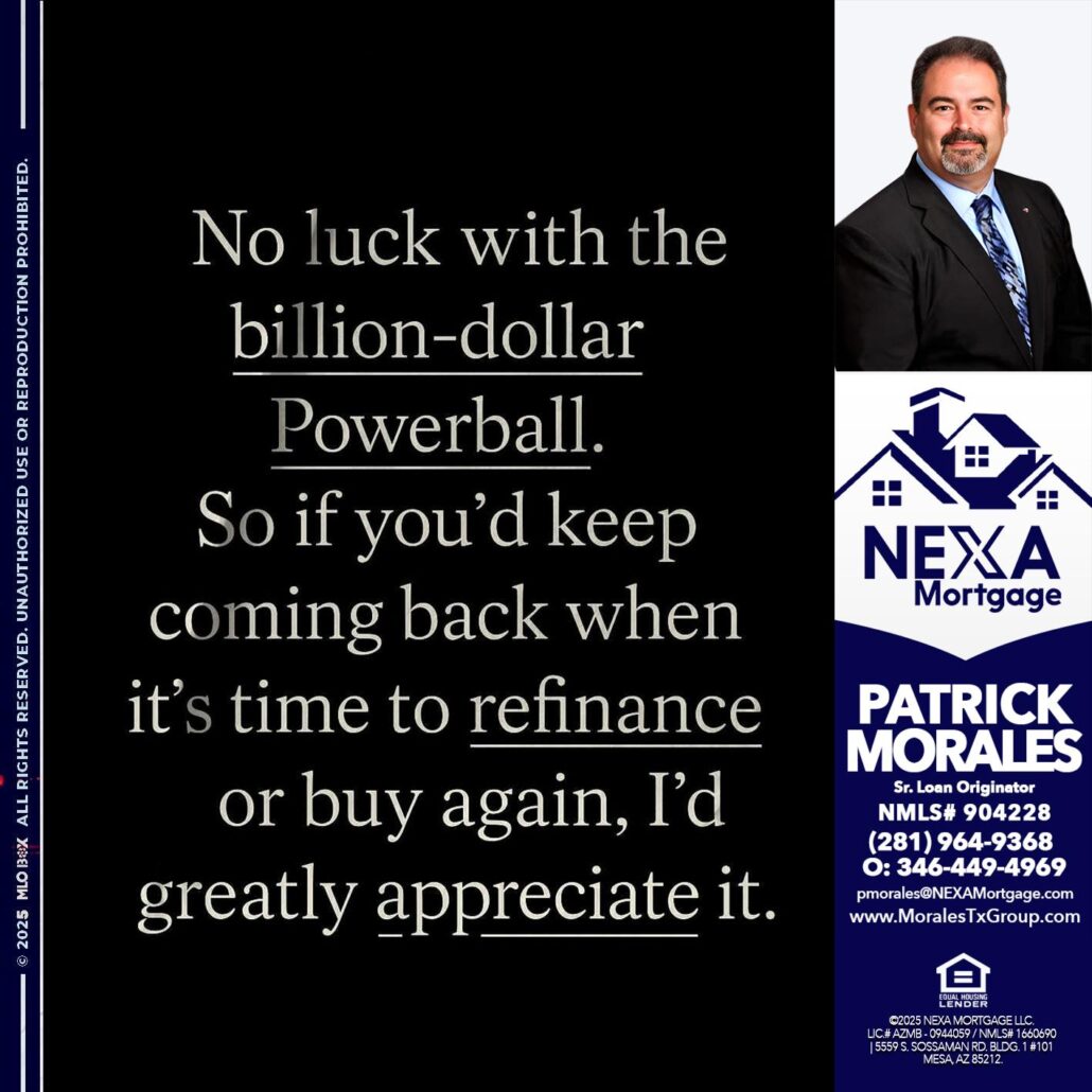 Hi, my name is Patrick Morales. I’m a Loan Officer with NEXA Mortgage LLC., offering personalized mortgage solutions, fast customized quotes, great rates and service with integrity.