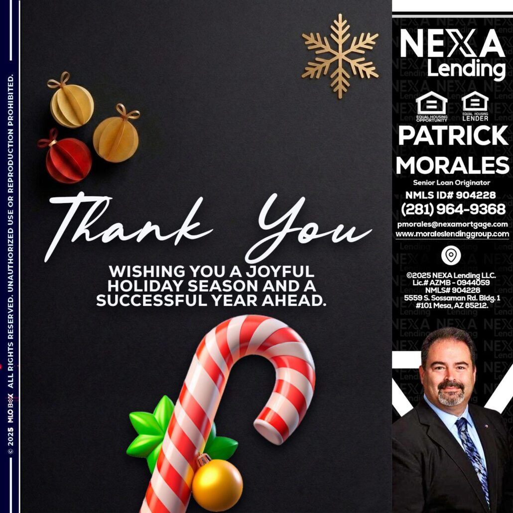 Hi, my name is Patrick Morales. I’m a Loan Officer with NEXA Lending LLC, offering personalized mortgage solutions, fast customized quotes, great rates and service with integrity.